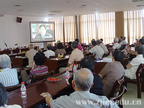 今天返校的离退休教职工,有不少是建校初期的元老,最大的已88岁高龄,在他们跟前,几位在职的“老”同志仿佛变小了。在欢迎会上,院长李曙明主持会议,并向大家的到来表示热烈欢迎,党委书记童学敏向离退休老同志介绍了参加教育部水平评估的简况和学院将进行的整改方案,对离退休老同志在学院发展初期付出的心血表示了诚挚的感谢。同时表示学院要以这次评估为契机,进一步巩固和扩大评建成果,把它作为我院按示范性高职院校标准建设的新起点。要进一步加强干部队伍建设,着力提升学院的管理水平;进一步加强高等职业教育研究,依托行业,扎实推进“德能并举,商学合一”的人才培养模式改革,强化办学特色;进一步加强师资队伍建设,努力打造优秀教学团队,着力提高教学质量;进一步完善专业建设发展规划,认真研究,理清专业建设思路,加大课程建设力度;进一步加大对学生综合素质的培育和提升,重视对学生创新精神和应用能力的培养,营造良好育人环境,努力培养更多优秀的高素质技能型人才,更好地为浙江经济和社会发展服务。